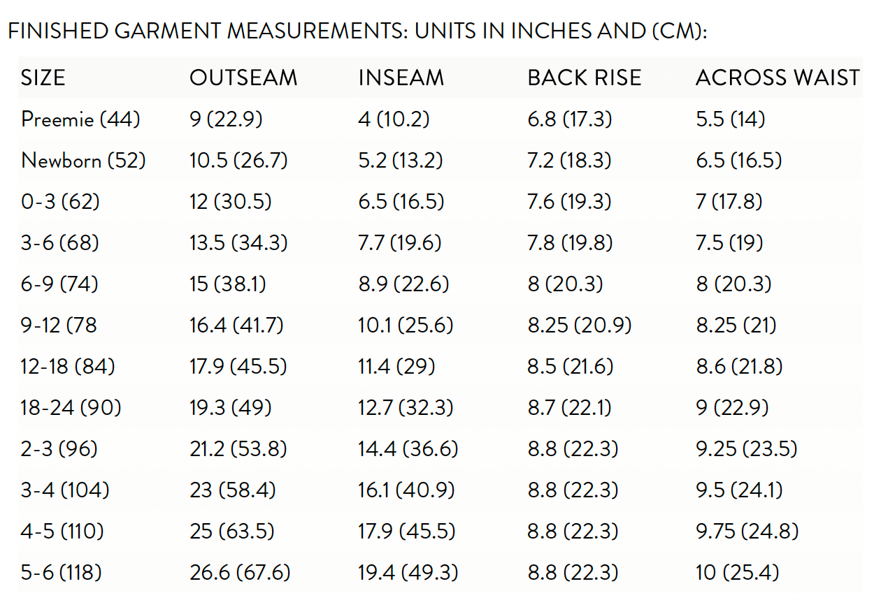 Leggings Measurements