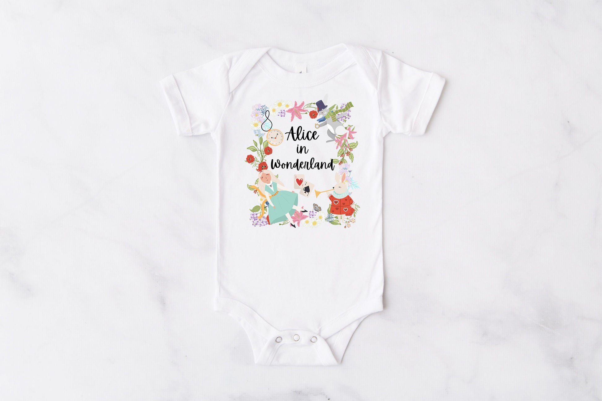 Baby girls Alice in Wonderland themed tutu outfit. Fairytale print bodysuit with tutu & headband.