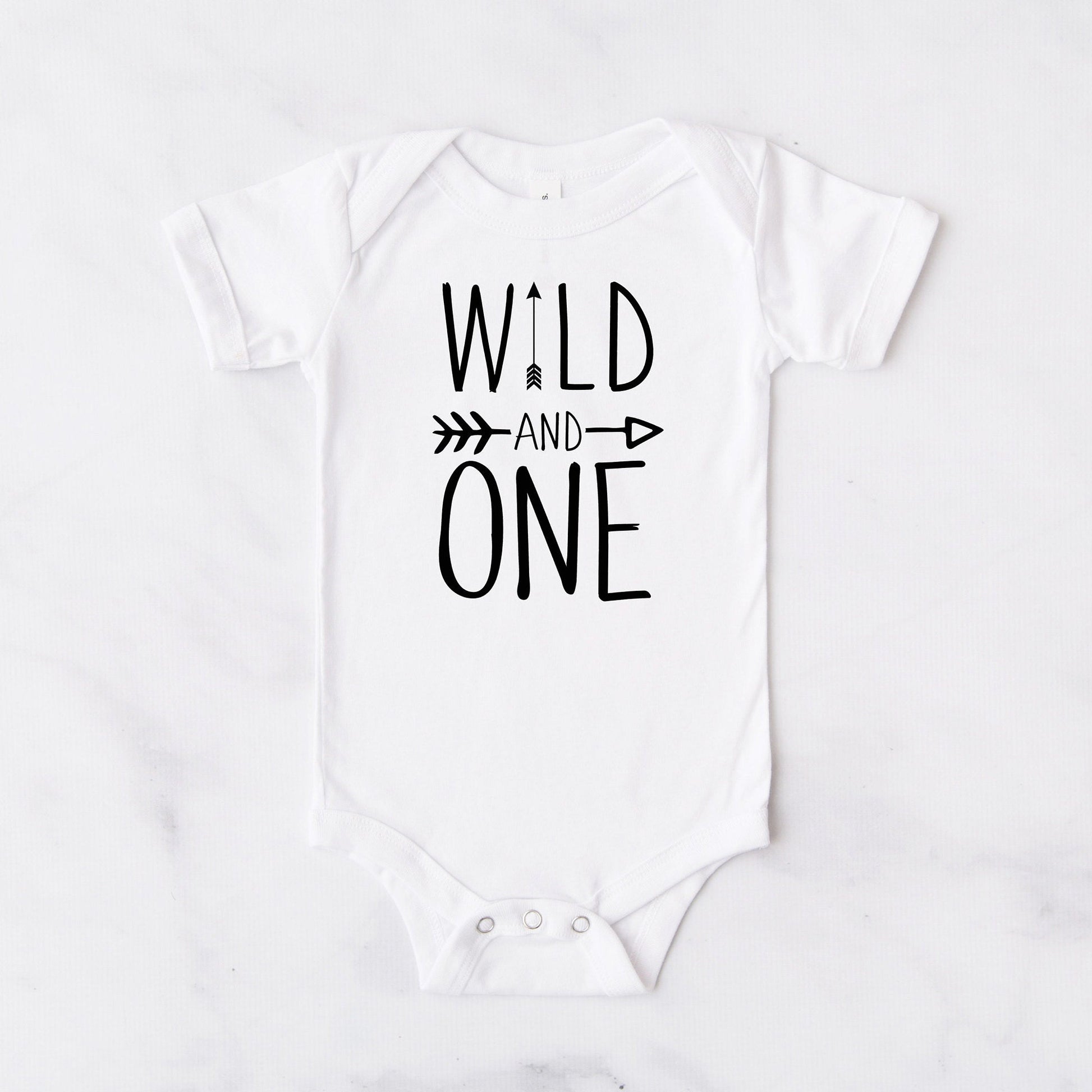 Celebrate his wild first year in this fun and feisty bodysuit! The playful "wild and one" message perfectly captures the adventurous spirit of a one-year-old discovering the world. Ideal for first birthday parties, milestone photos, or cake smash celebrations, this bodysuit makes his special day unforgettable. The soft, stretchy fabric ensures comfort during all the excitement and activity. A perfect keepsake that honours his fearless personality and marks this incredible milestone with style and personality!