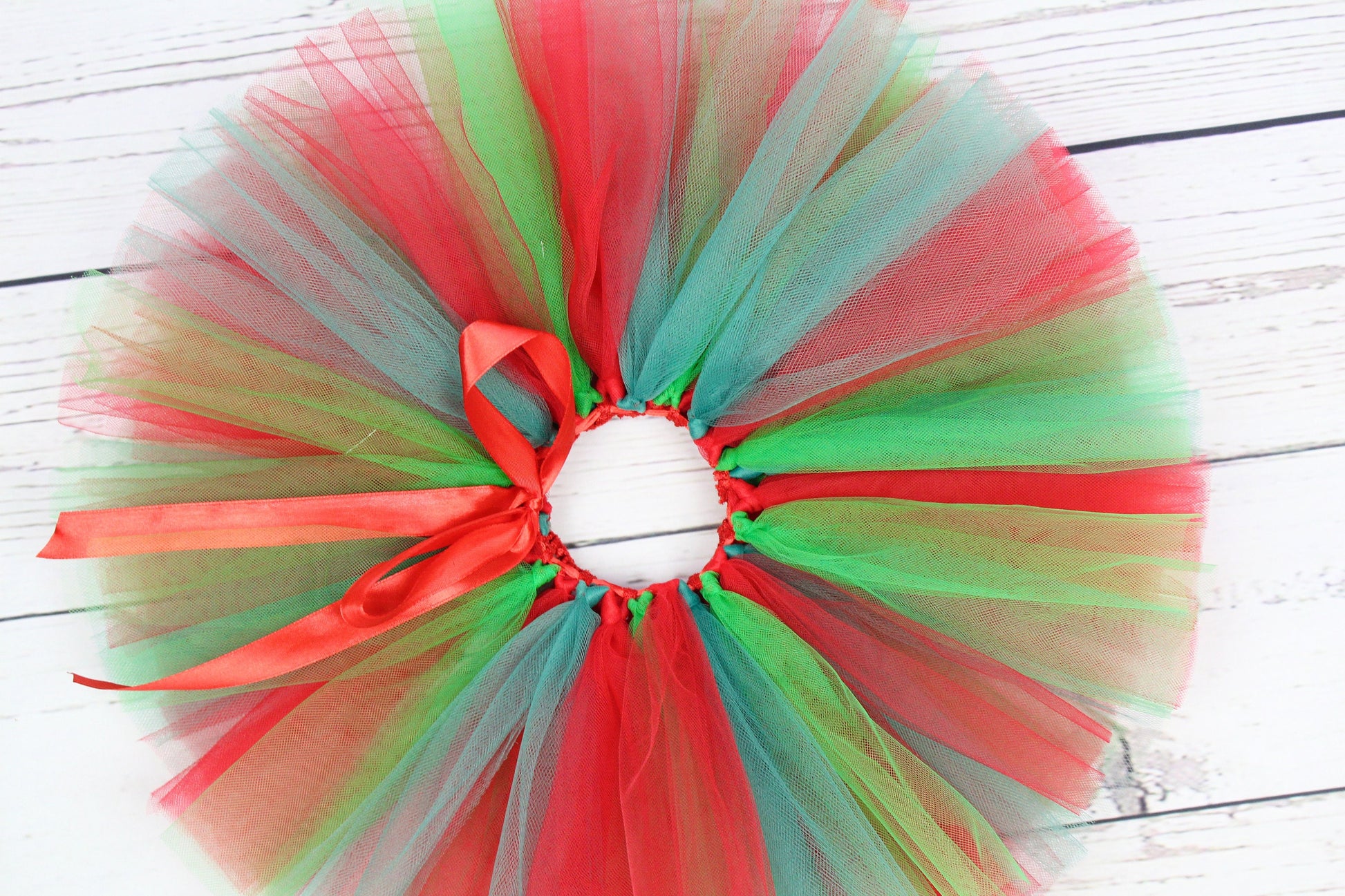 Classic Christmas colours: bright red and green tulle for an elf-inspired look