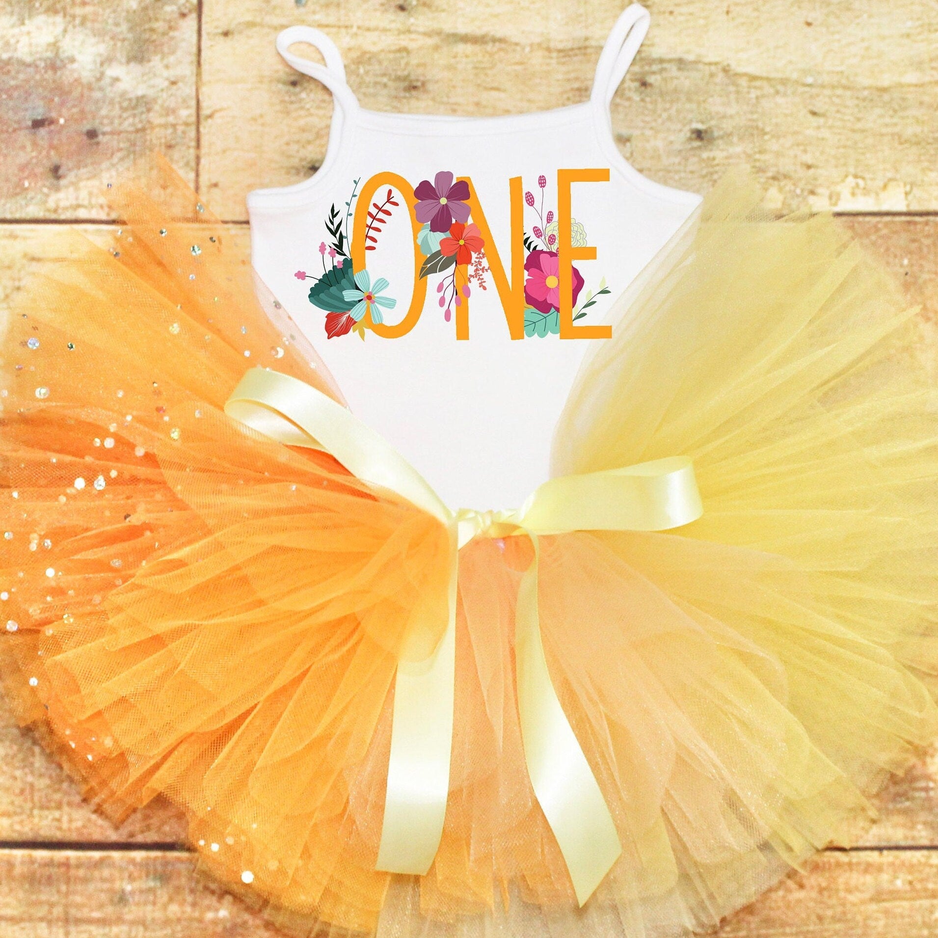 Orange Ombre Floral 1st Birthday Tutu Outfit