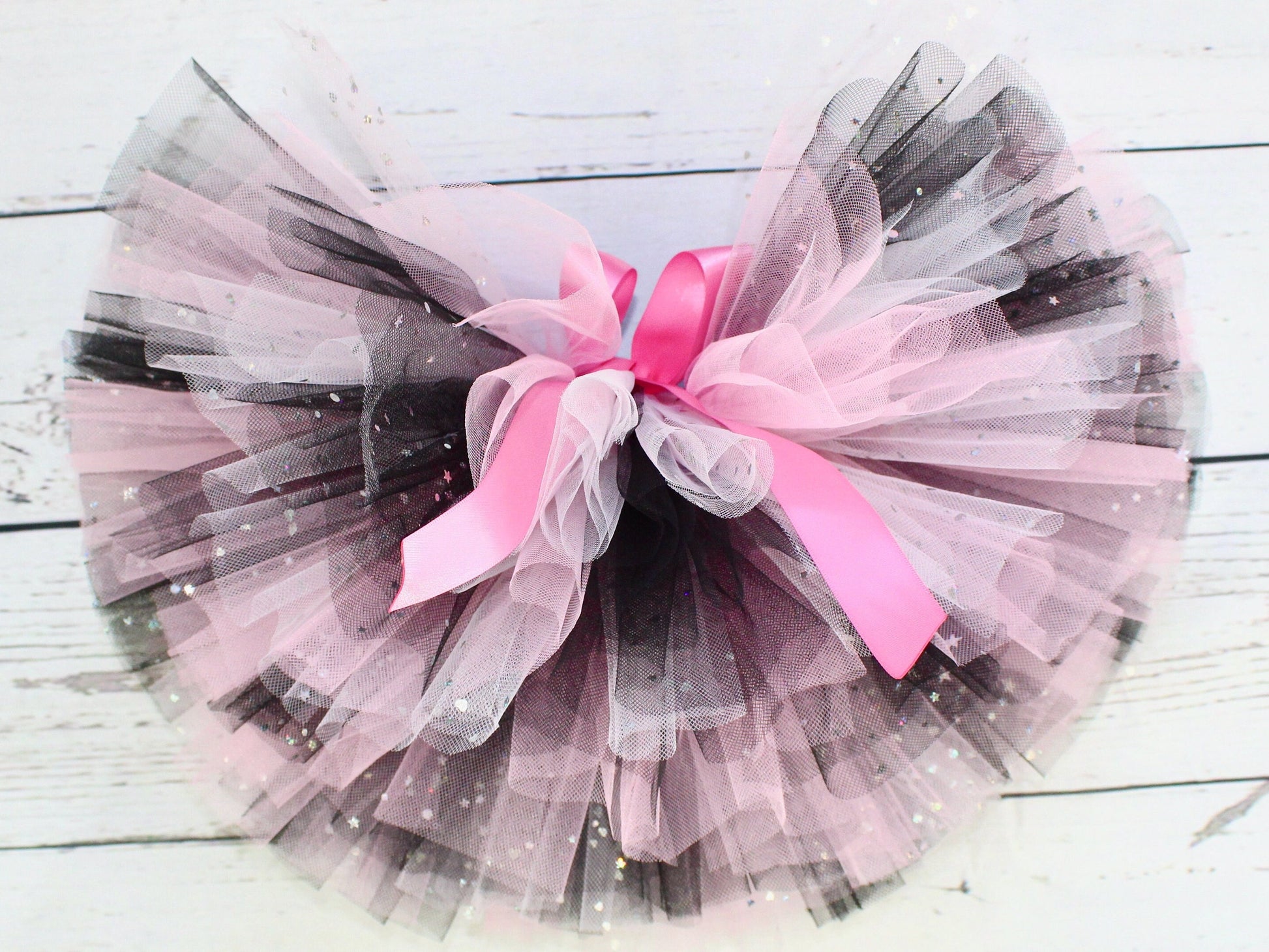 Our black & pink tutu is the sweetest little skirt to finish off your little girls Halloween costume! It features layers of fluffy tulle, finished off with a satin bow.