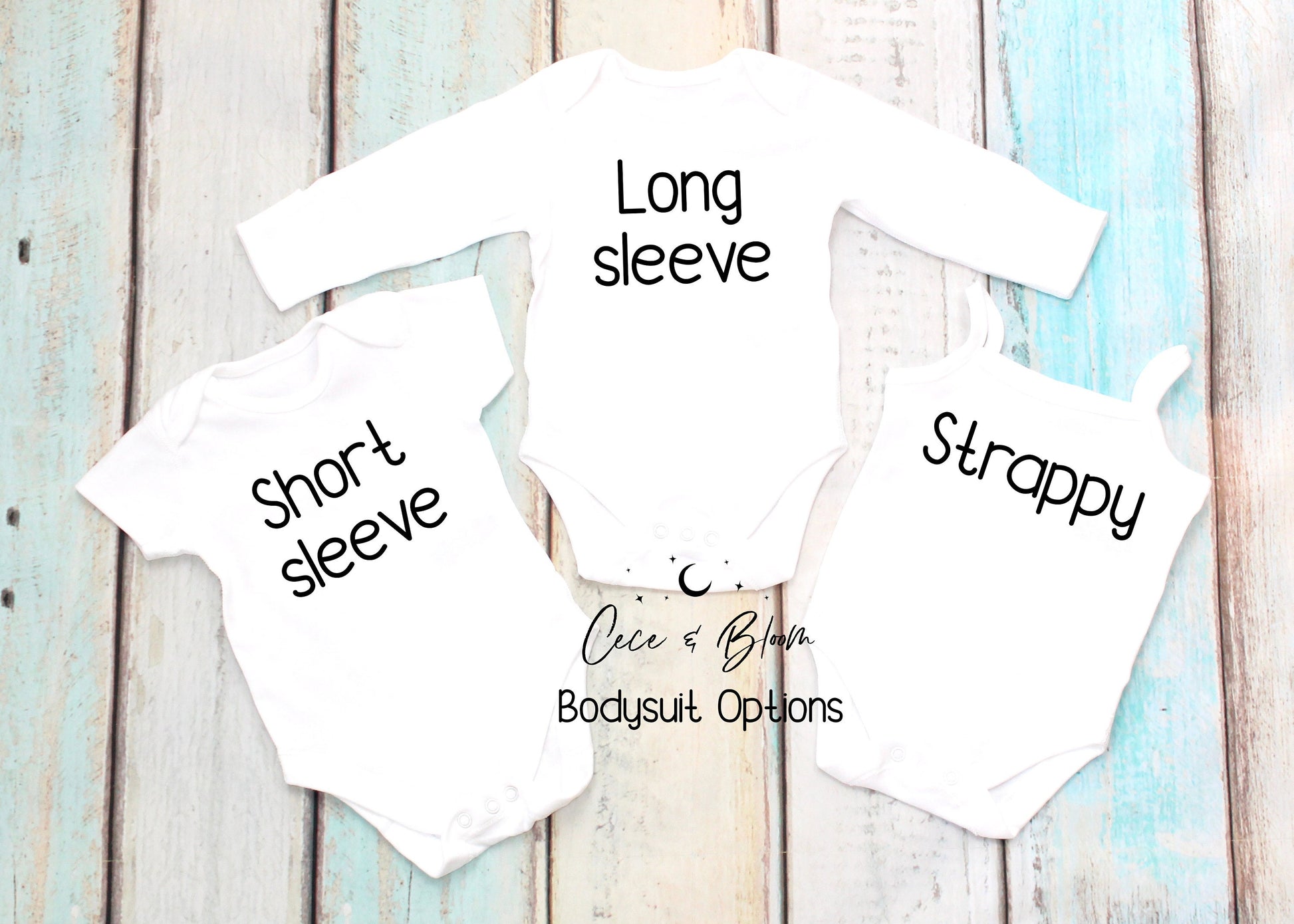 A beautiful 100% organic cotton baby bodysuit, hand printed in gold glitter. The print features a fairy wand & is personalised with your little girls name.