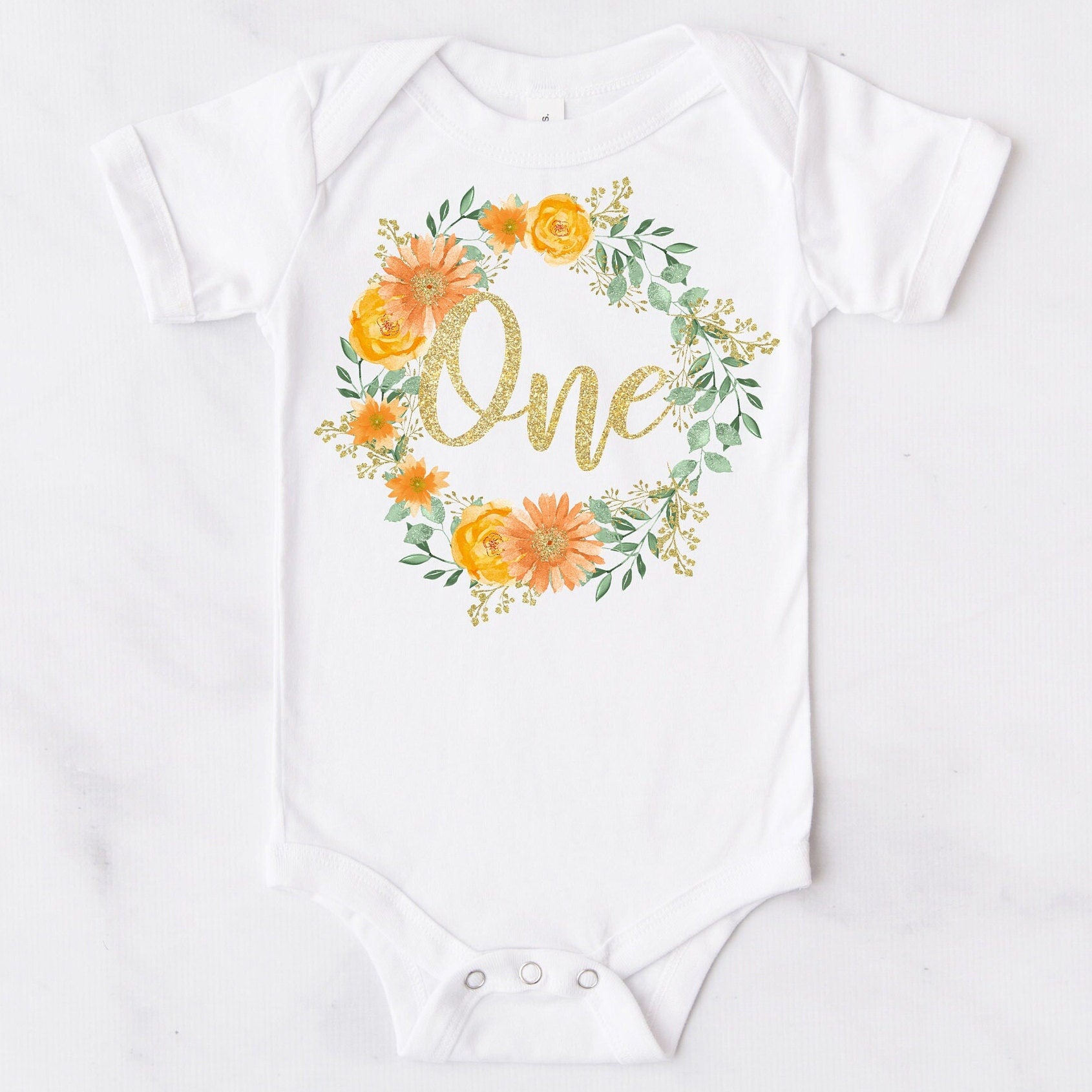 Light up her first birthday in this vibrant tangerine floral wreath 'one' bodysuit! The cheerful tangerine hue paired with a beautiful floral wreath design creates a warm, joyful look that's perfect for celebrating this special milestone. Ideal for first birthday parties, photo sessions, or cake smash adventures, this bodysuit brings colour and personality to her big day. The soft, gentle fabric ensures she stays comfortable while looking absolutely radiant. A delightful keepsake that marks her first year with sunshine and style!