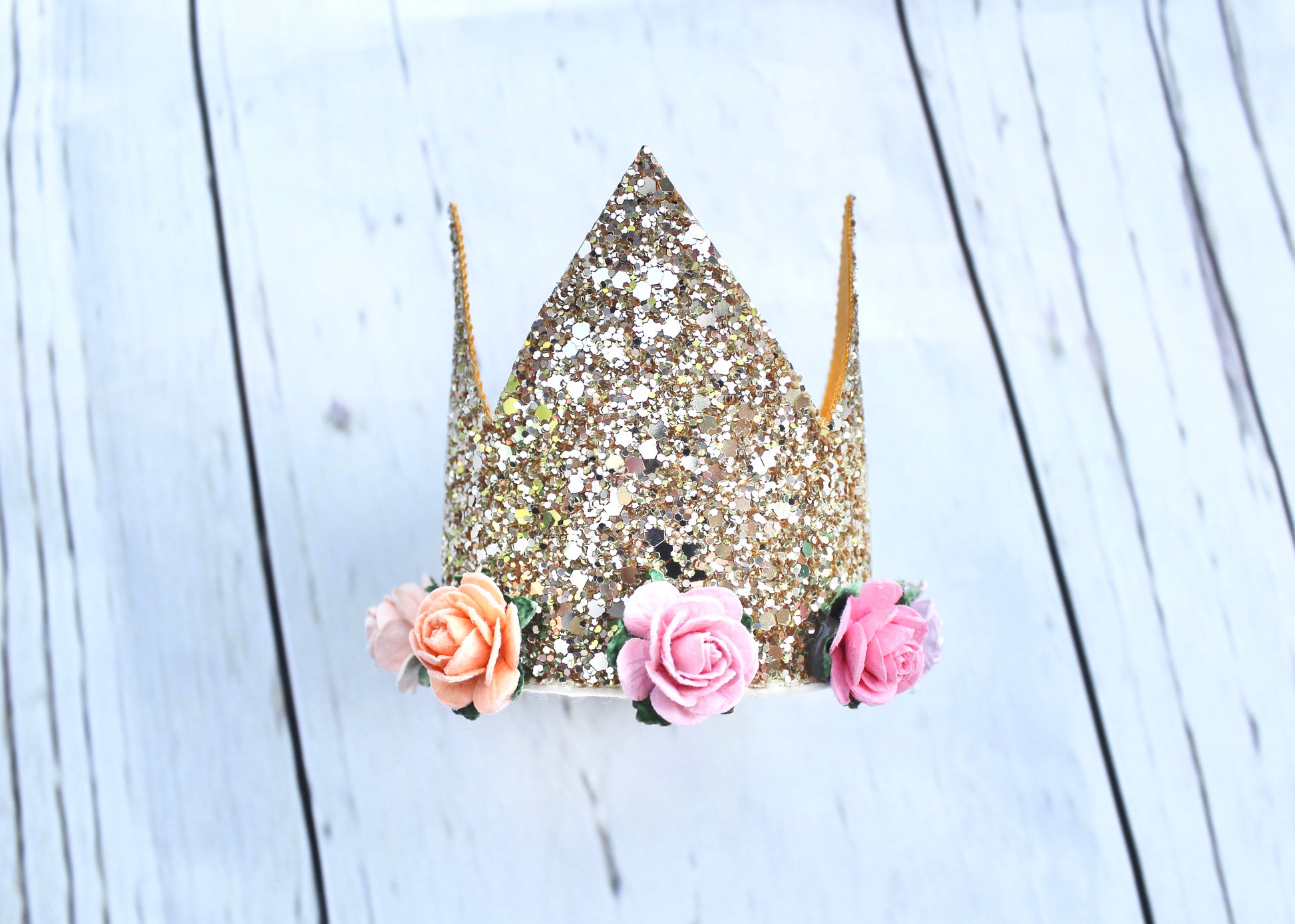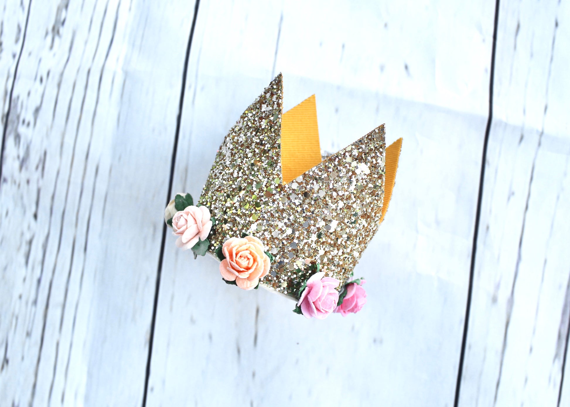 Gold Sparkle & Floral Crown