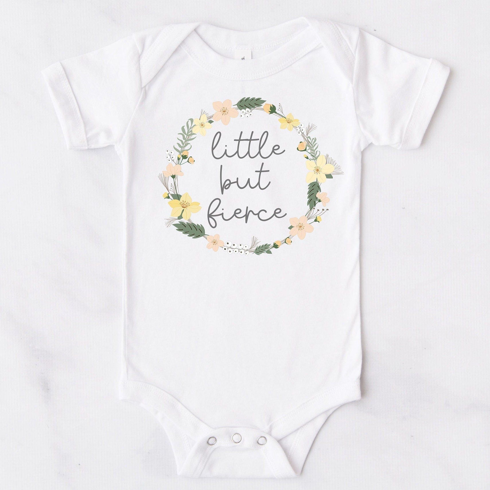 Introducing your little powerhouse in this cheeky Little But Fierce Baby Girl Bodysuit! Perfect for parents who know their daughter's got attitude and personality to spare, this playful piece celebrates her bold spirit. Comfortable for everyday wear and ideal for showing off her confident character, it's a fun way to let her personality shine. Whether she's conquering nap time or charming everyone around her, this bodysuit says it all. A delightful choice for a girl who's already proving she's got big dreams!