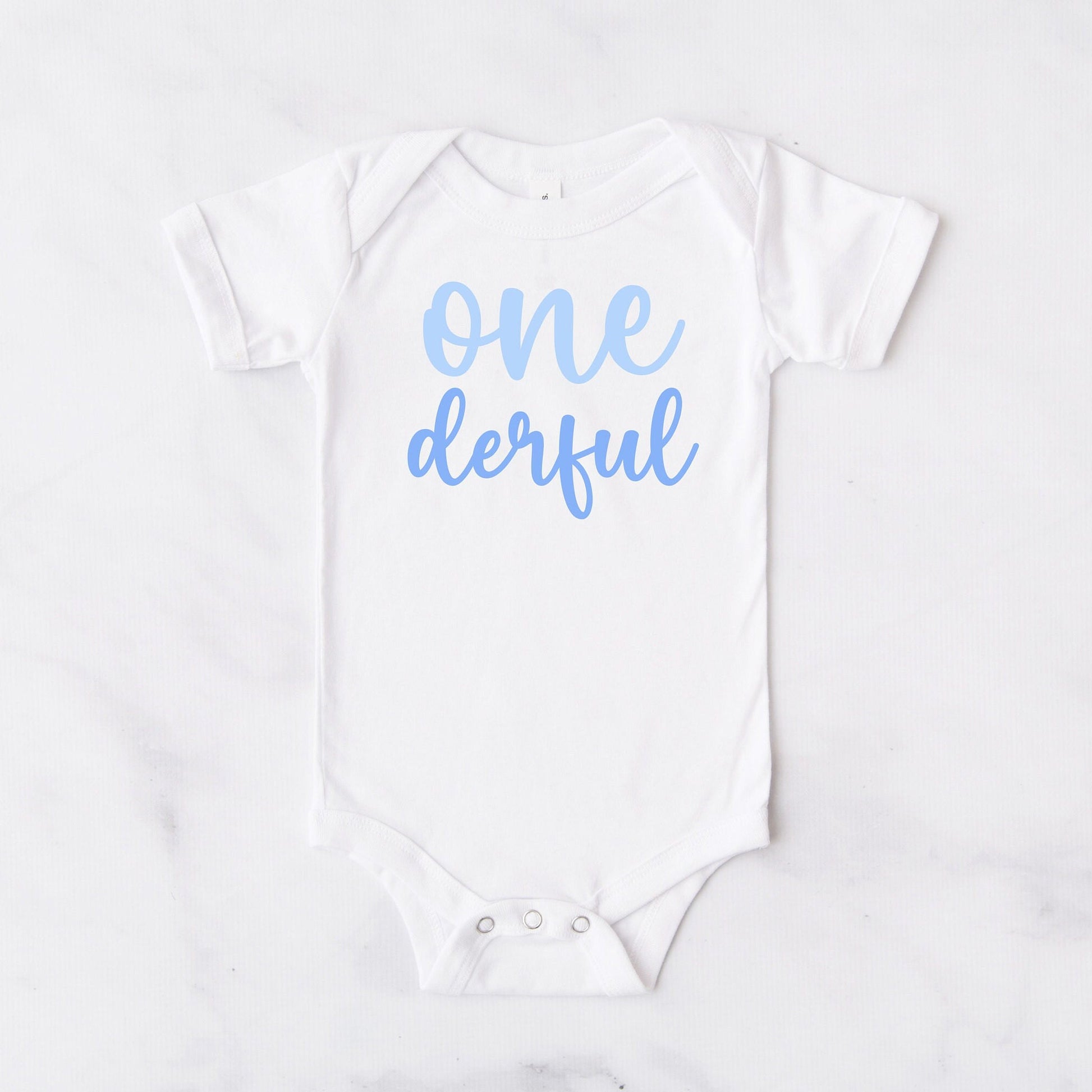 Celebrate how ONEderful he is in this charming first birthday bodysuit! The clever wordplay perfectly captures the magic and joy of his first year. Ideal for first birthday celebrations, photo sessions, or special family gatherings, this bodysuit makes his milestone moment extra memorable. The soft, comfortable fabric keeps him happy and content while looking absolutely adorable. A sweet keepsake that honours just how wonderful and special he truly is!