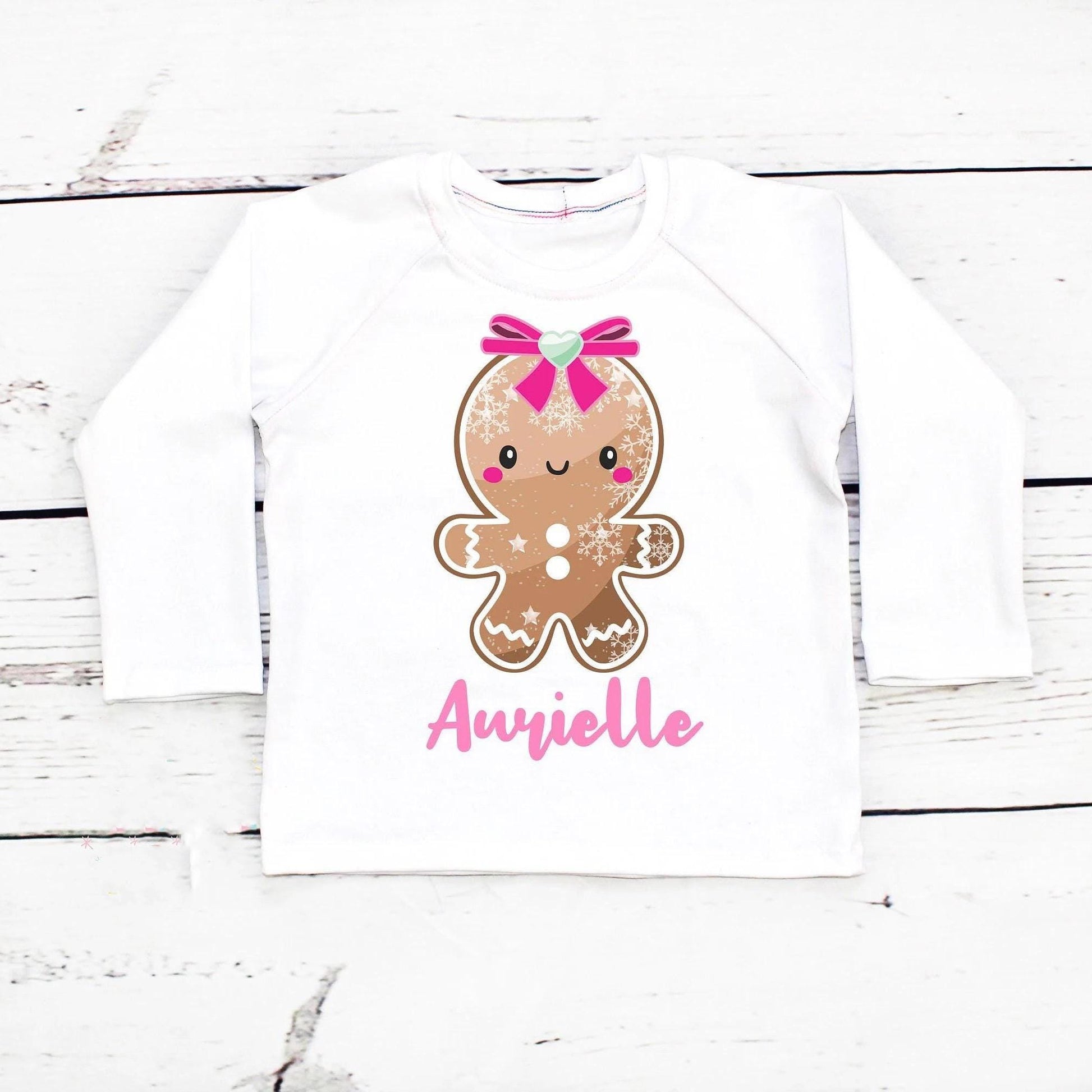 🍪 Personalised Gingerbread Girl Shirt – Adorable Christmas Top for Kids! 🍪 Add a dash of holiday magic with this super-cute personalised gingerbread girl t-shirt! Featuring a smiling gingerbread character topped with a pink bow, this festive design is perfect for Christmas parties, holiday photos, cookie-baking days, and everyday December cheer. Customised with your child’s name in a playful script, it’s a one-of-a-kind piece they’ll love wearing all season long.