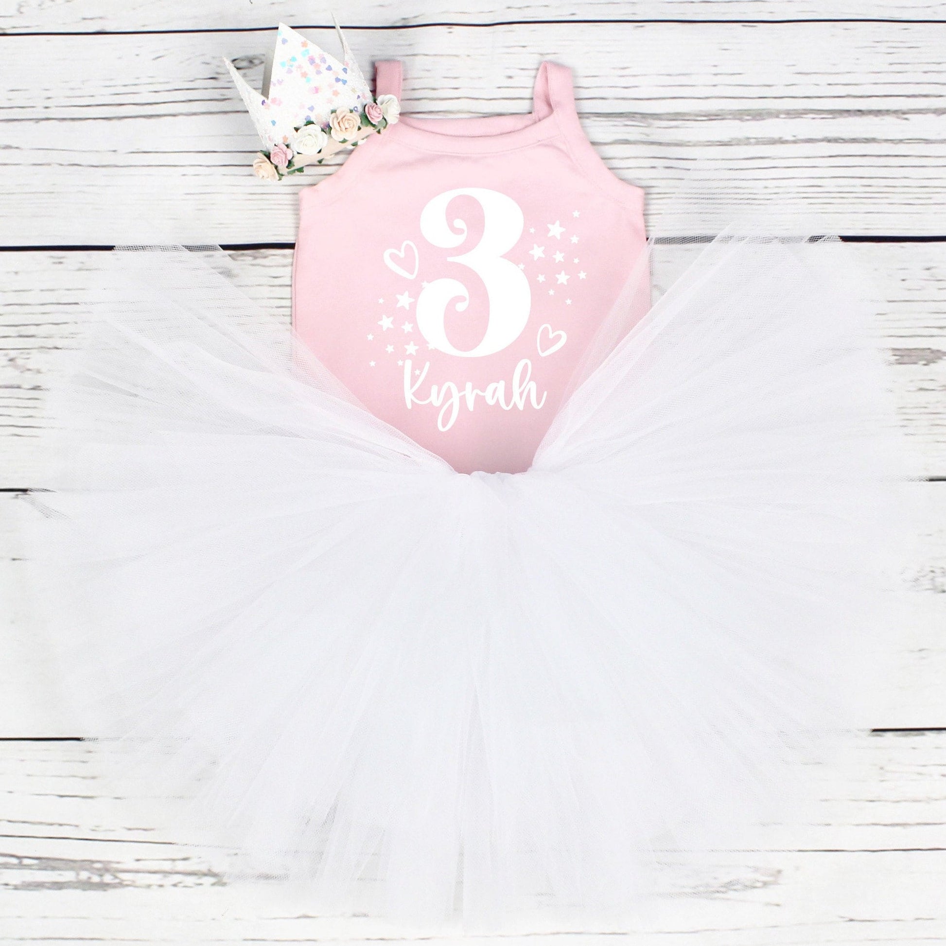 Personalised Girls 3rd Birthday Tutu Outfit in Pink & White