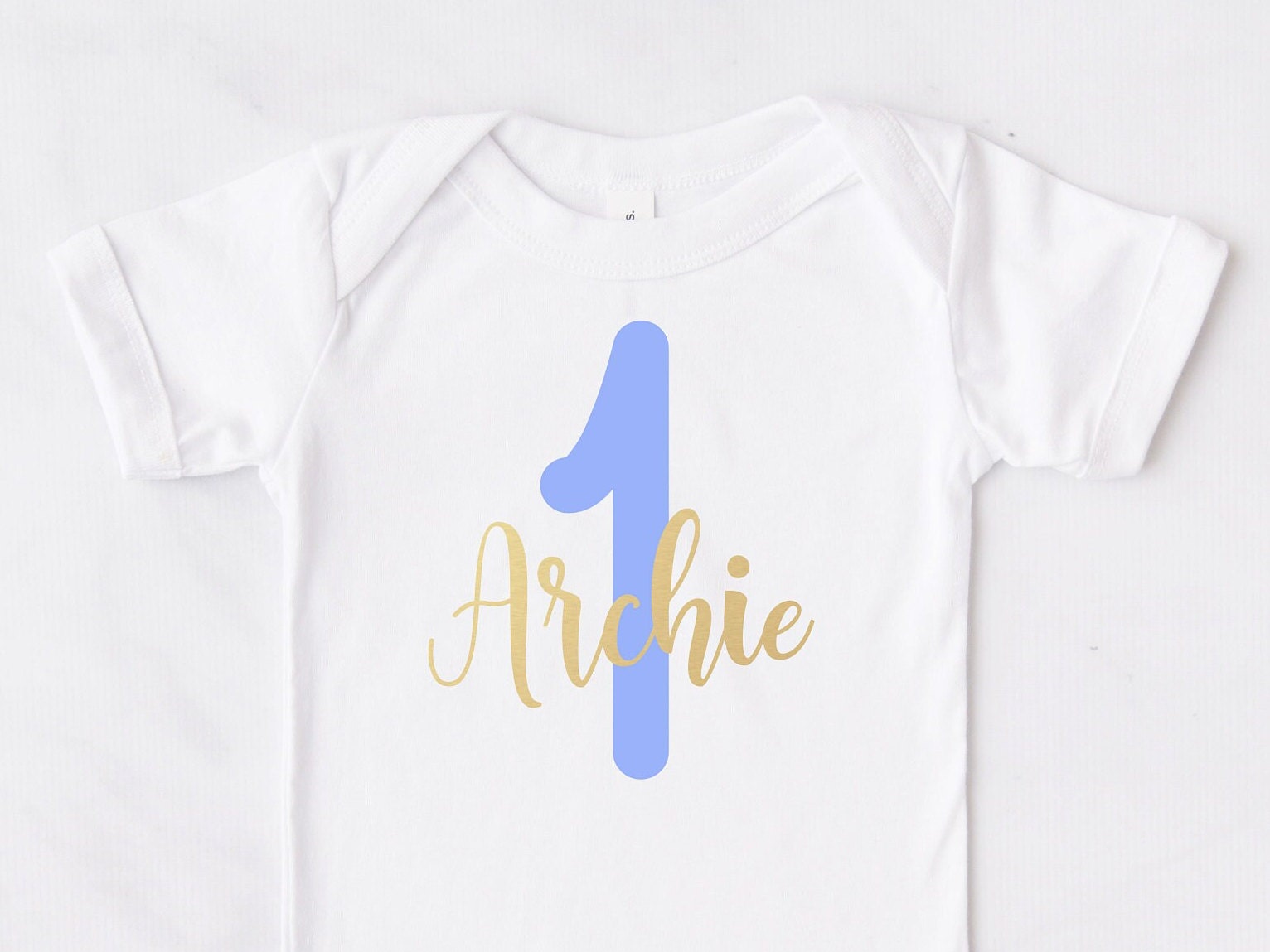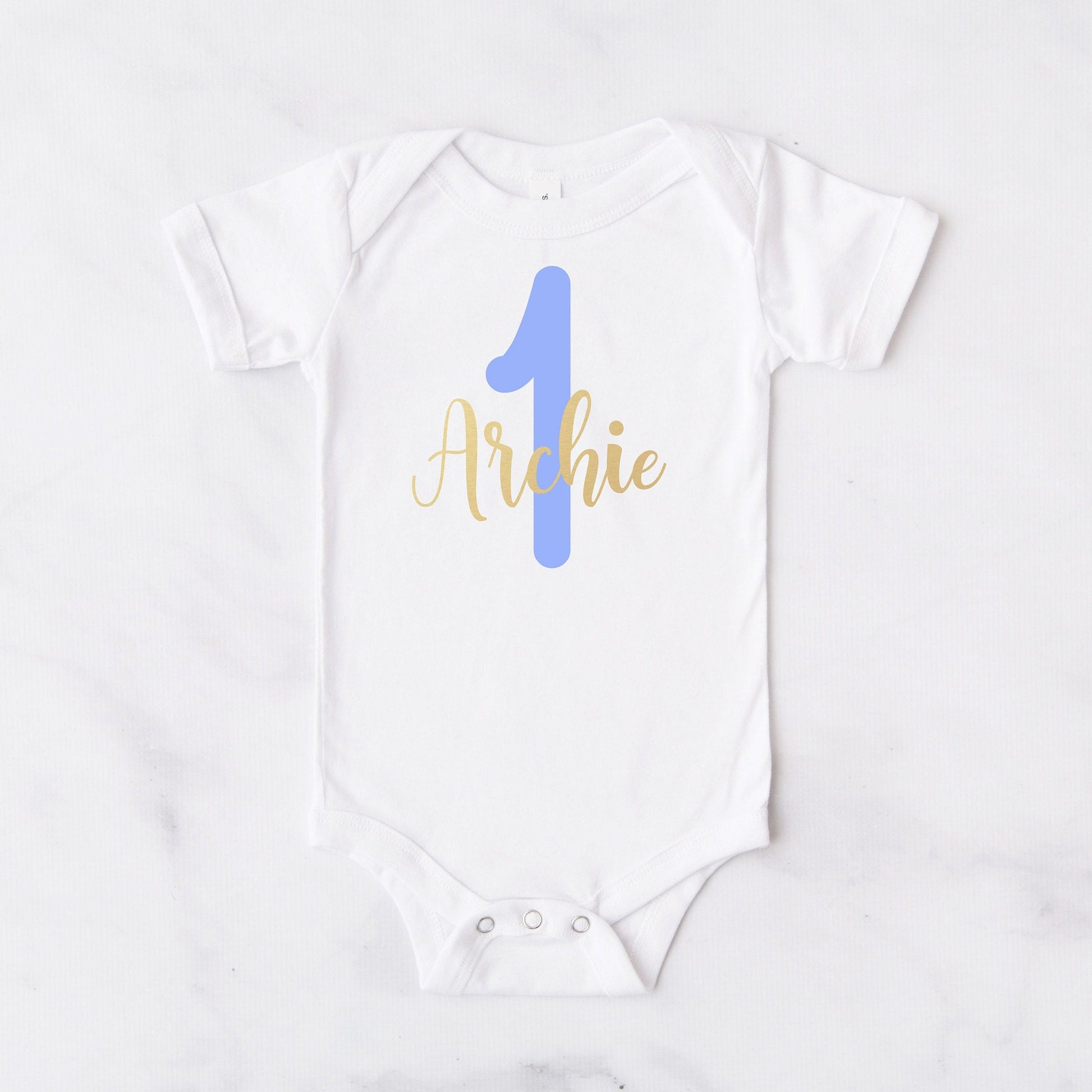 Celebrate in style with this elegant blue and gold 1st birthday bodysuit! The sophisticated colour combination of rich blue and shimmering gold creates a luxurious look perfect for marking this milestone. Ideal for first birthday parties, professional photo sessions, or special family celebrations, this bodysuit brings glamour to his big day. The soft, quality fabric keeps him comfortable and content while looking absolutely stunning. A timeless keepsake that captures the magic of turning one with elegance and joy!