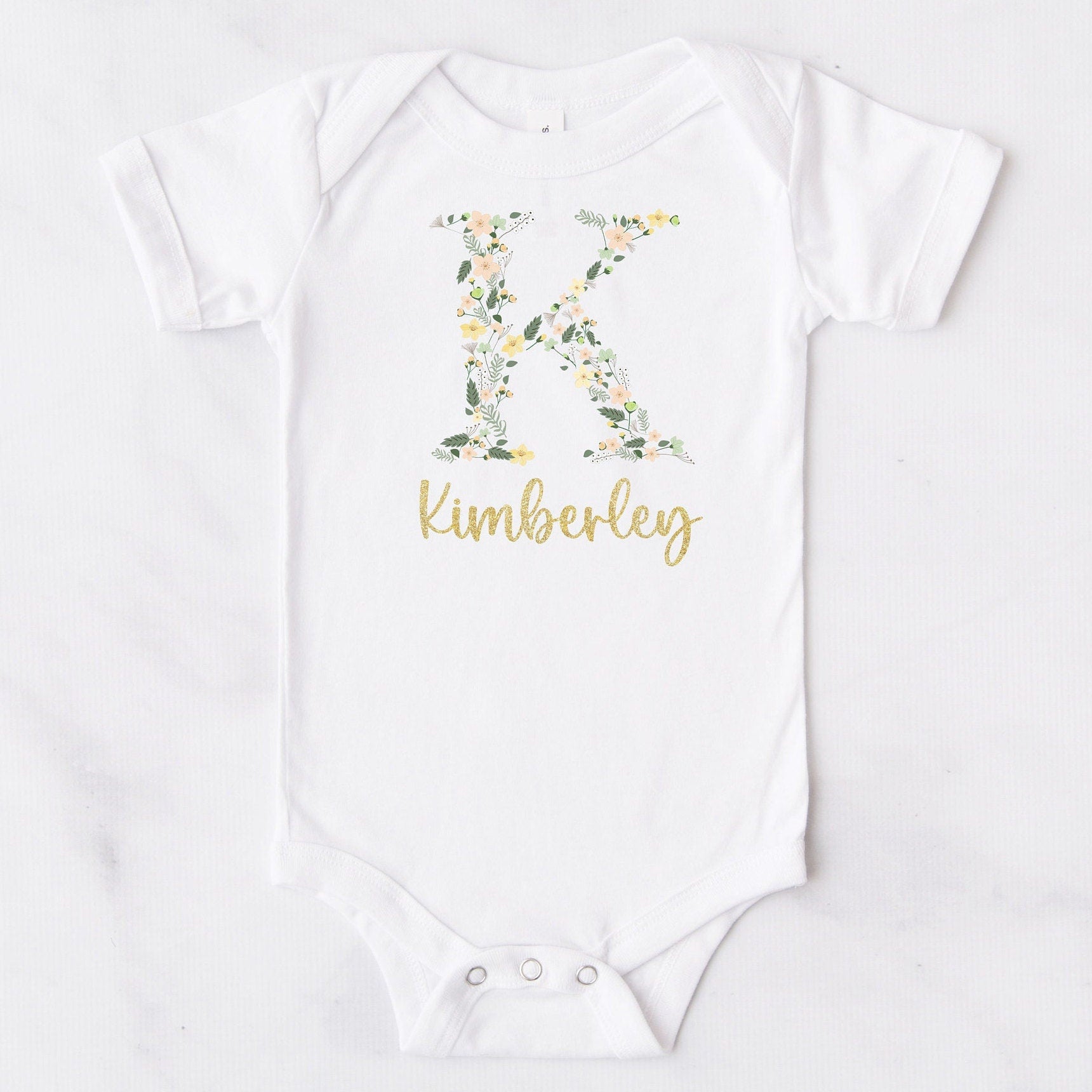 Personalised baby girls bodysuit - floral initial / letter print. Name printed underneath. Cute coming home shirt or baby shower gift!