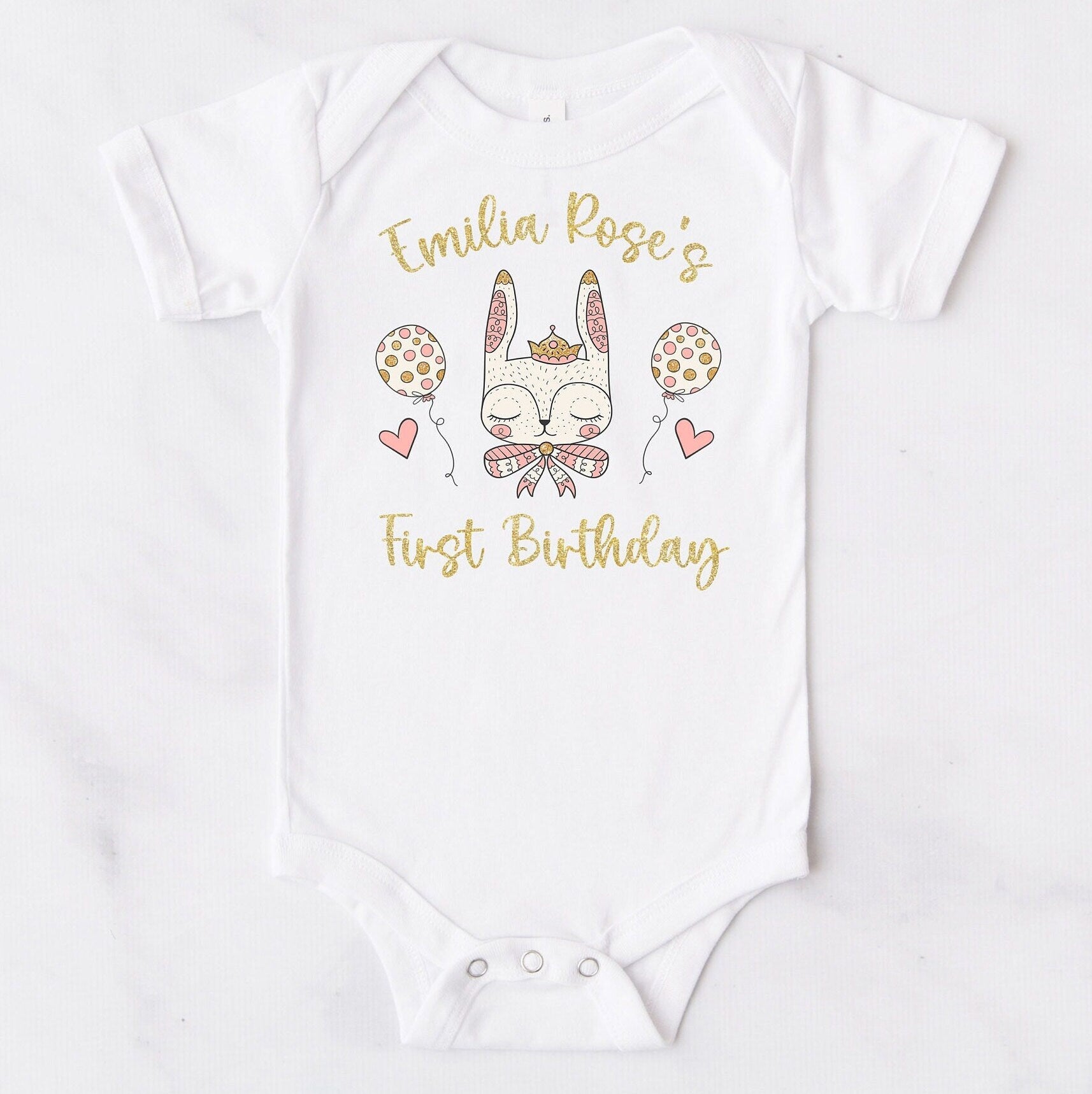 Hop into royal adventures with this adorable bunny princess first birthday bodysuit! Combining the sweetness of a bunny with the elegance of a princess, this charming piece is perfect for little ones who love fairy tales and fluffy friends. Ideal for dress-up play, themed parties, or imaginative adventures, this bodysuit sparks creativity and joy. The soft, comfortable fabric allows her to move freely while looking absolutely precious. A delightful costume piece that celebrates her love of magic, royalty, and all things cute!