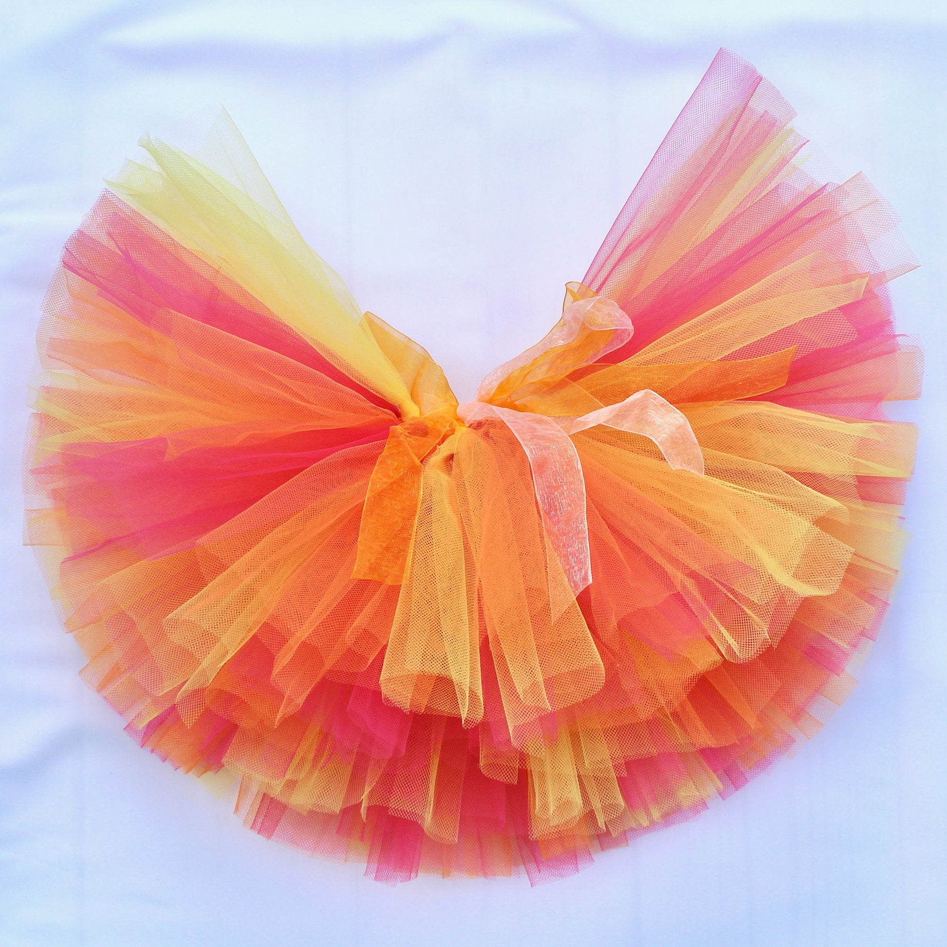 Introducing our Tutti Frutti Tutu Skirt - perfect for adding a burst of color to any outfit! Featuring a playful combination of pink, orange, and yellow tulle, this skirt is sure to make a statement. Pair it with a basic top for a fun and flirty look. (Fruit salad not included.)