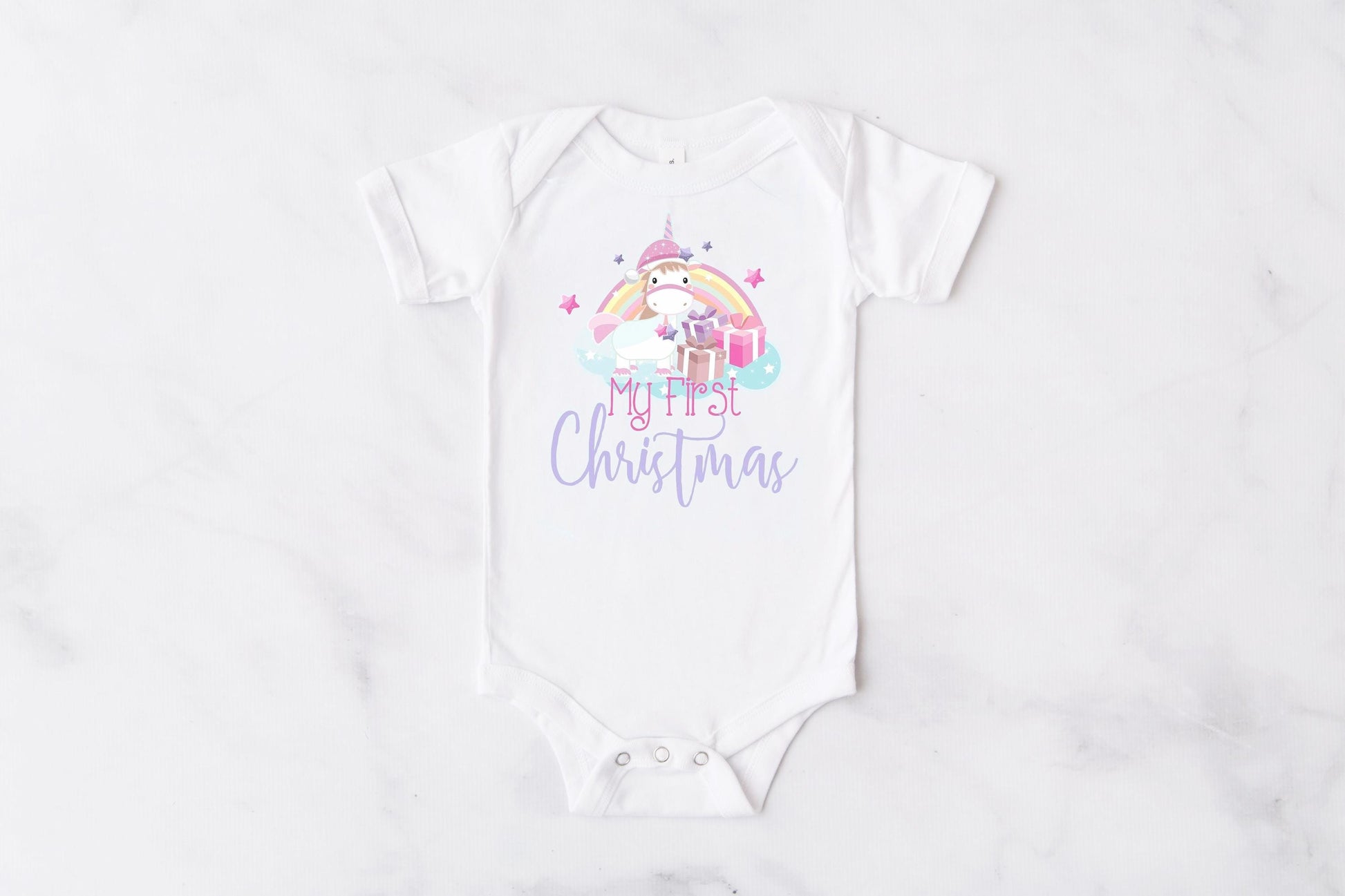 Gallop into her first Christmas with this magical unicorn bodysuit! Combining festive cheer with mythical wonder, this enchanting piece celebrates her holiday season in style. The whimsical unicorn design brings magic and imagination to seasonal celebrations, perfect for family gatherings and those precious first Christmas photos. Soft and snug, it keeps your little one comfortable whilst looking absolutely magical. Make her debut festive season extra special with an outfit that's as unique and wonderful as she is!